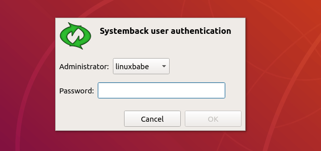 Then you can start Systemback from your application menu. You need to enter your password to use this software. After you enter the password, click OK button.
